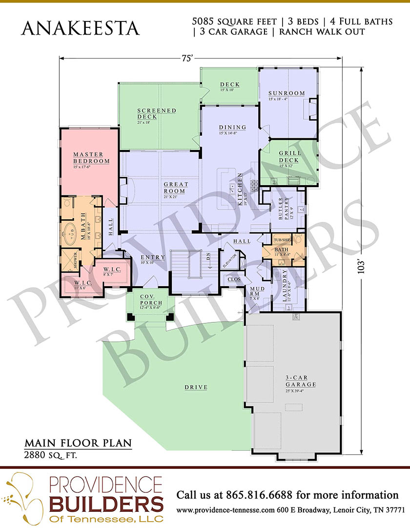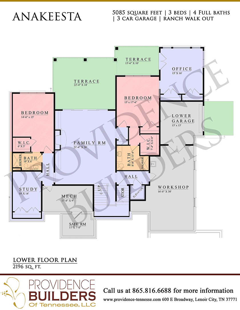 Type: Ranch Walkout, 5085 Square Feet, 3 Bedrooms, 4 Full Bathrooms, 3-Car Garage.