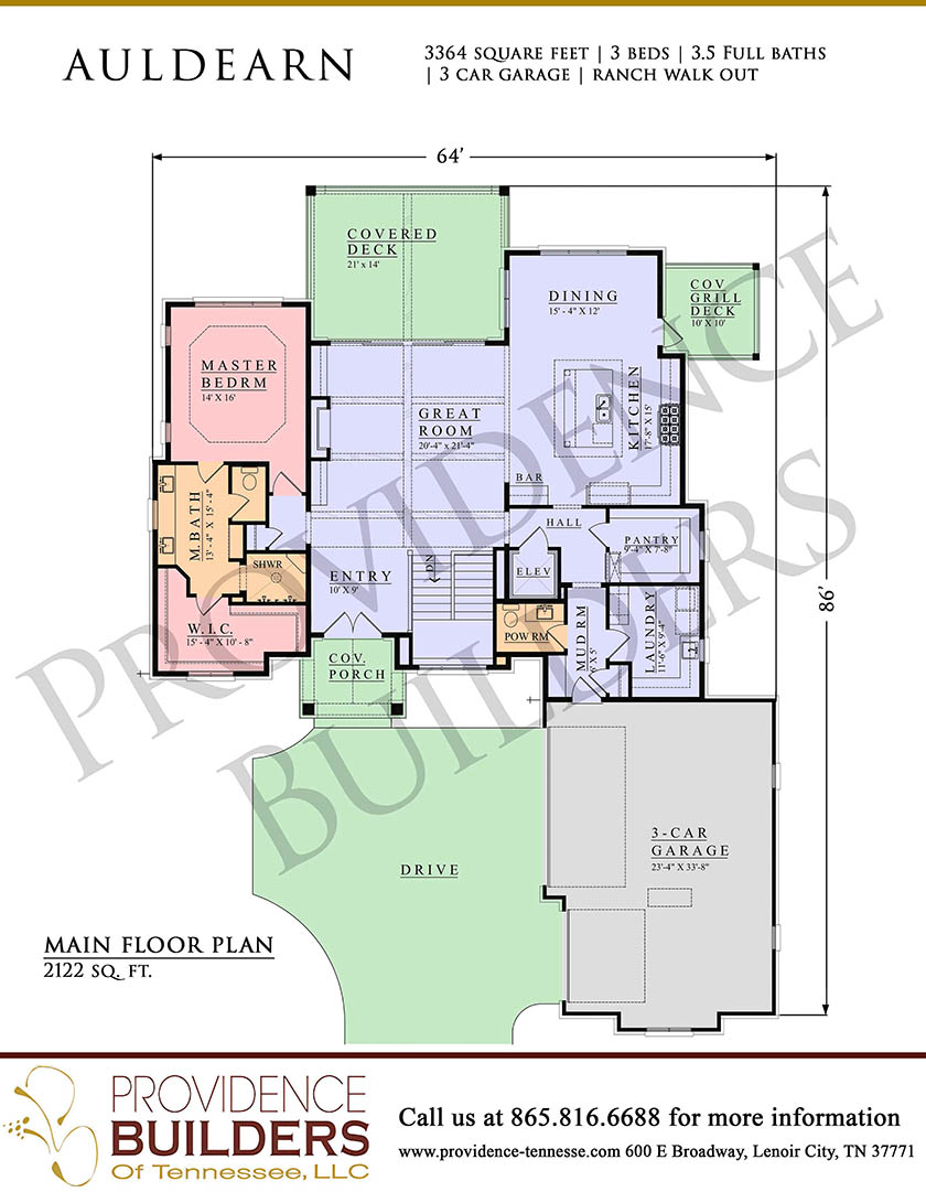 Type: Ranch Walkout, 3364 Square Feet, 3 Bedrooms, 3 Full Bathrooms, 1 Half Bathroom, 3-Car Garage.