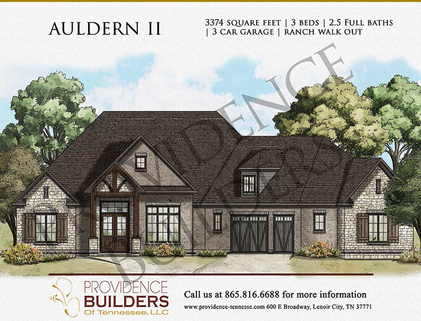 Type: Ranch Walkout, 3374 Square Feet, 3 Bedrooms, 2.5 Full Bathrooms, 3-Car Garage.