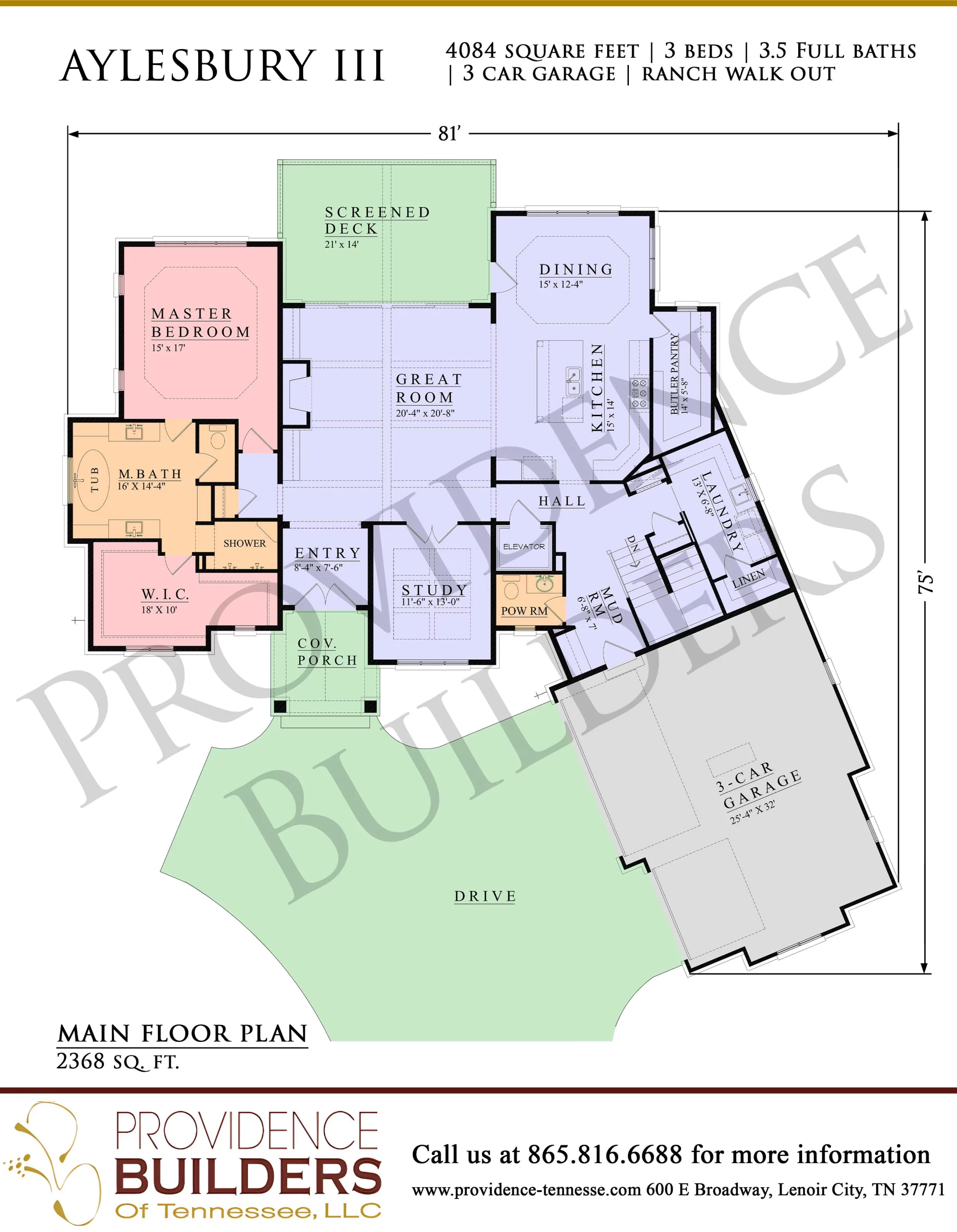Type: Ranch W/O, 4084 Square Feet, 3 Bedrooms, 3 Full Bathrooms, 1 Half Bathroom, 3-Car Garage.