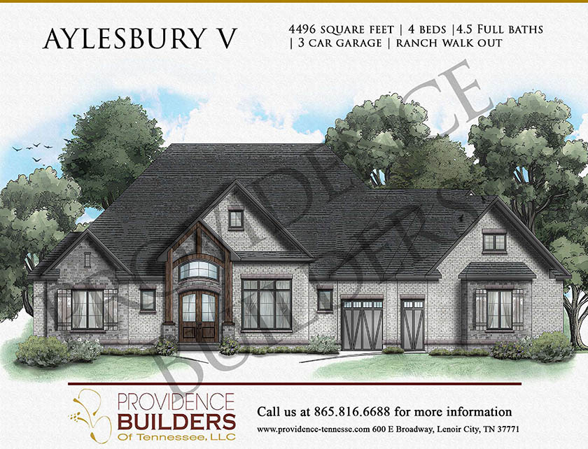 Type: Ranch Walkout, 4496 Square Feet, 4 Bedrooms, 4.5 Full Bathrooms, 3-Car Garage.