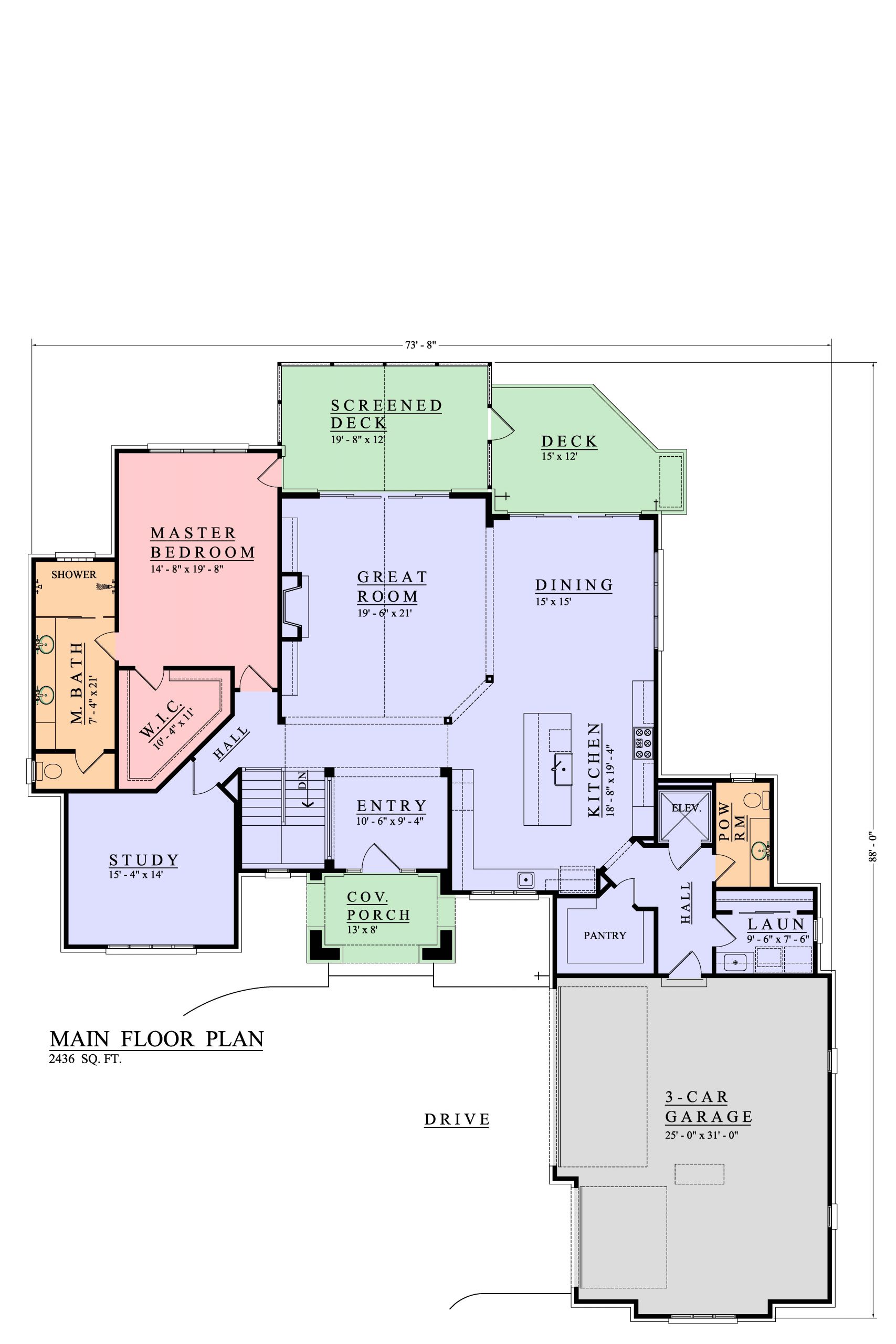 Dimensions: 74' x 88'