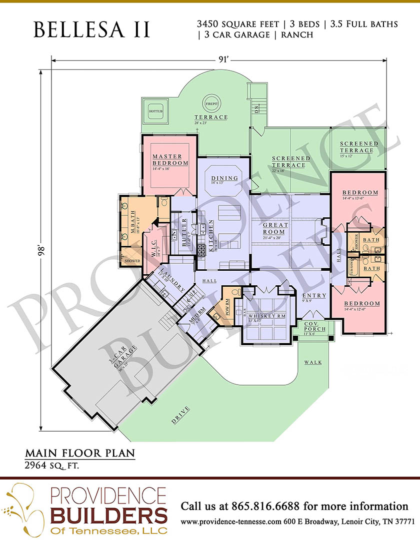 Type: Ranch, 3450 Square Feet, 3 Bedrooms, 3.5 Full Bathrooms, 3-Car Garage.