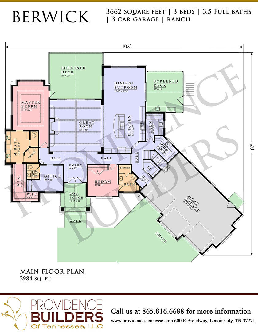Type: Ranch, 3662 Square Feet, 3 Bedrooms, 3.5 Full Bathrooms, 3-Car Garage.