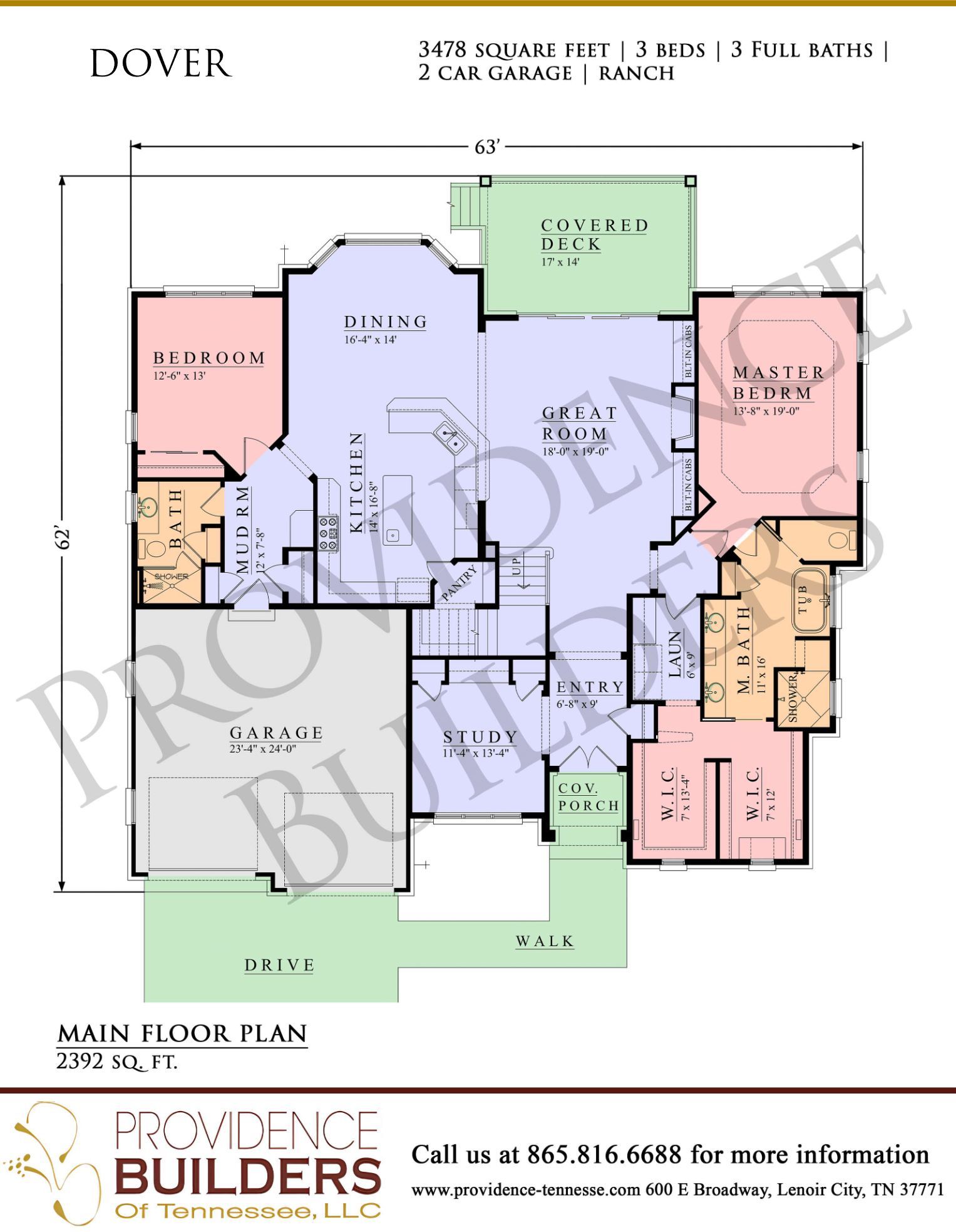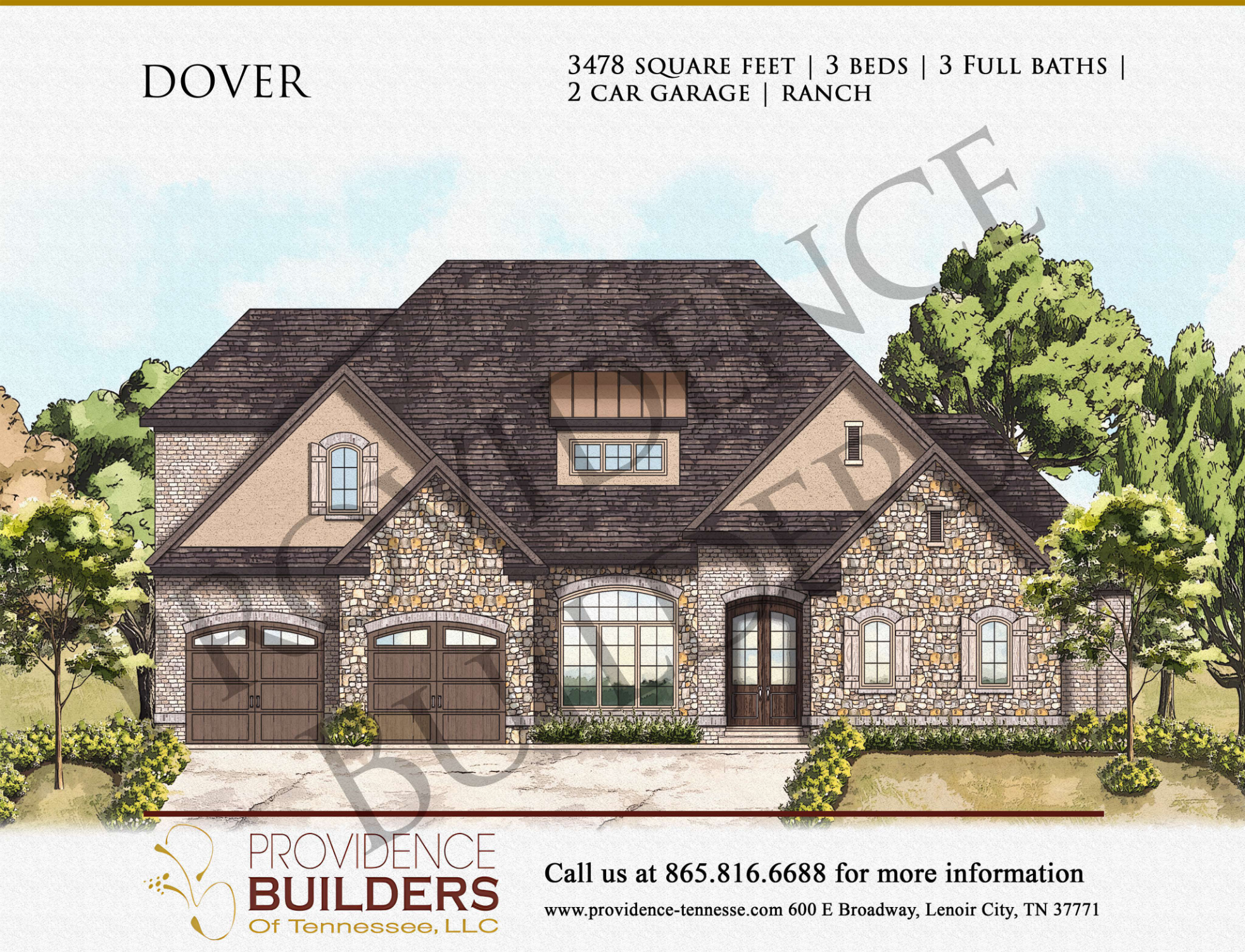 Type: Ranch, 3,478 Square Feet, 3 Bedrooms, 3 Full Bathrooms, 2-Car Garage.