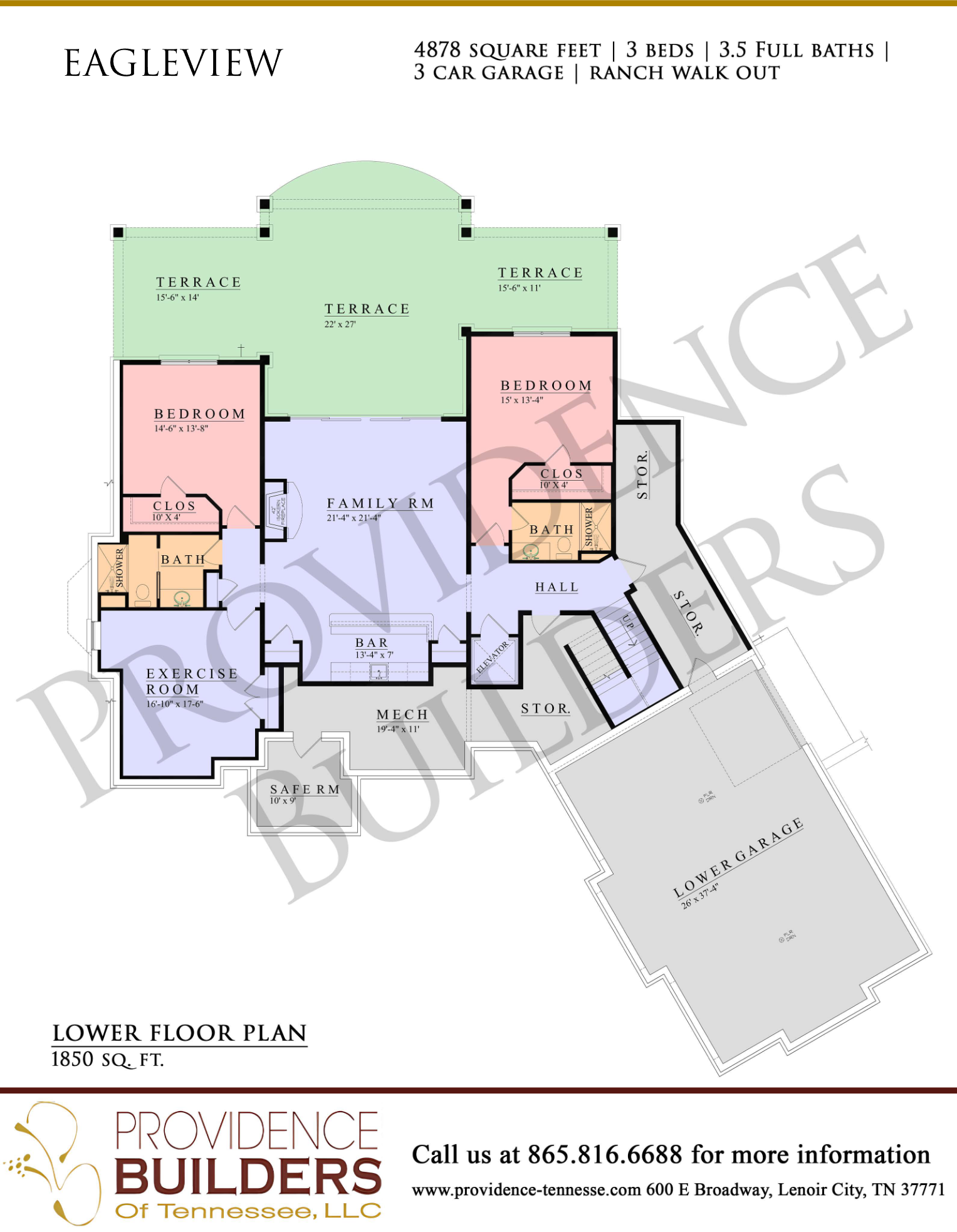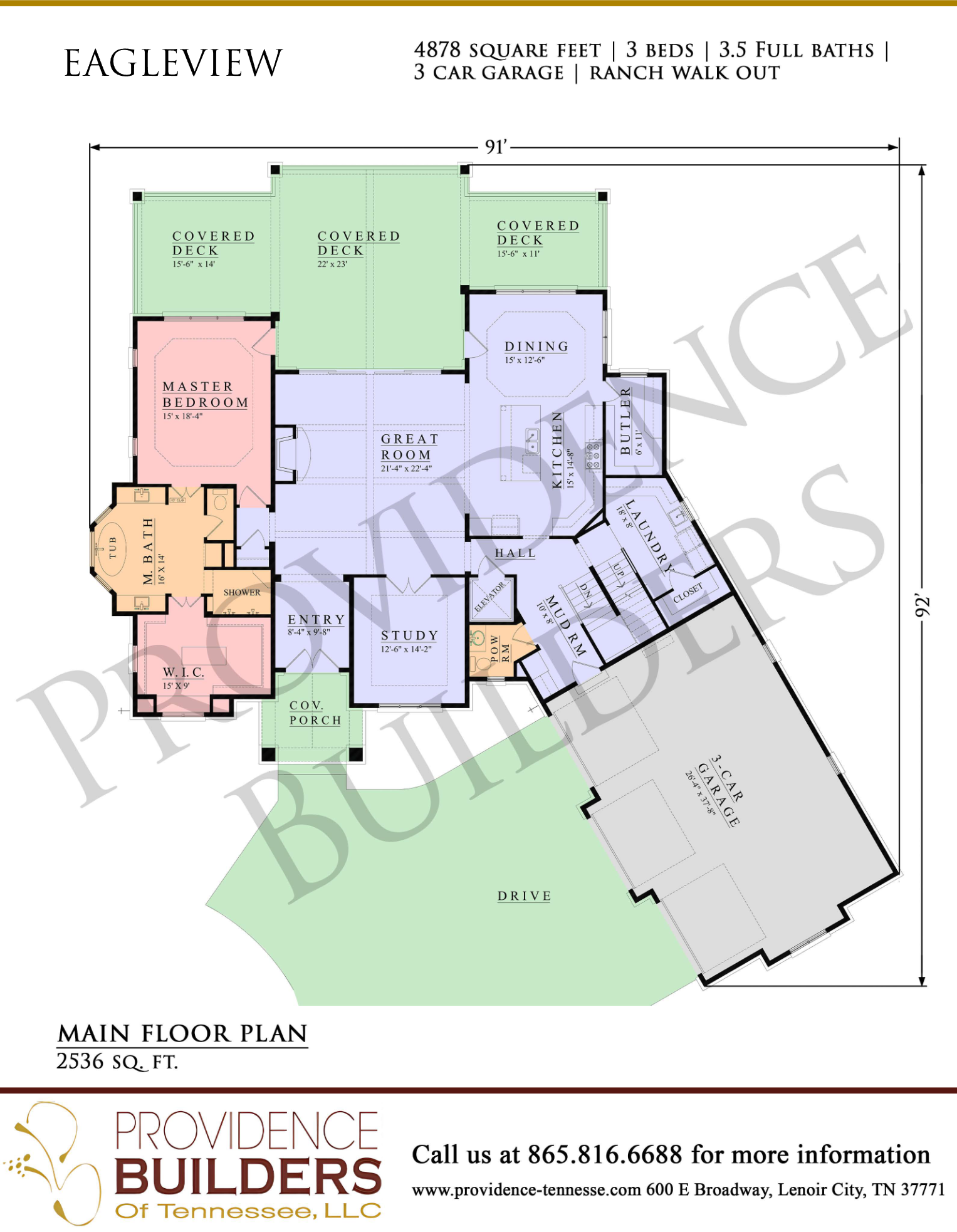 Type: Ranch W/O, 4878 Square Feet, 3 Bedrooms, 3 Full Bathrooms, 1 Half Bathroom, 3-Car Garage.